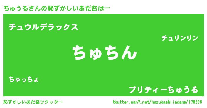 | ヘコむあだ名 | 『ちゅうる(小並感)』『ちゅにー』 |
