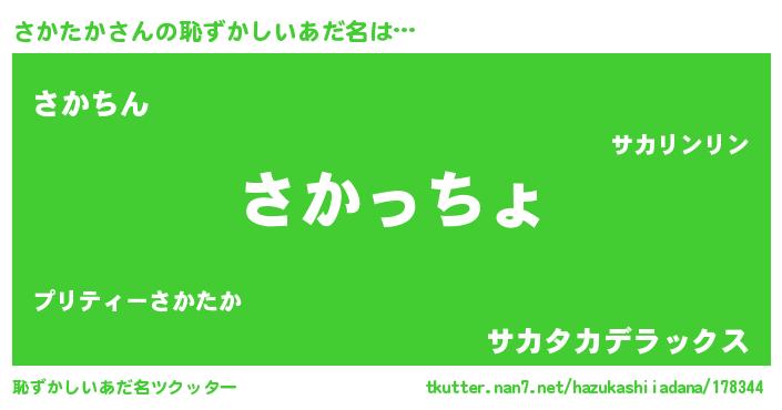 | 男性向けラノベタイトル風あだ名 | 『転生したらさかたかだった件』 |