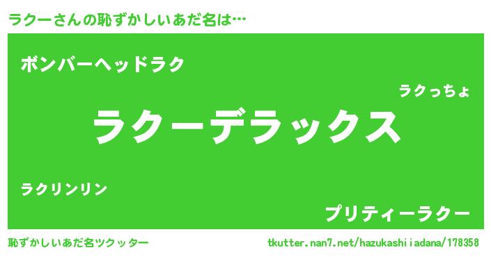 | 意味不明あだ名 | 『自称ラクー』『眠気覚ましガムラクー味』 |