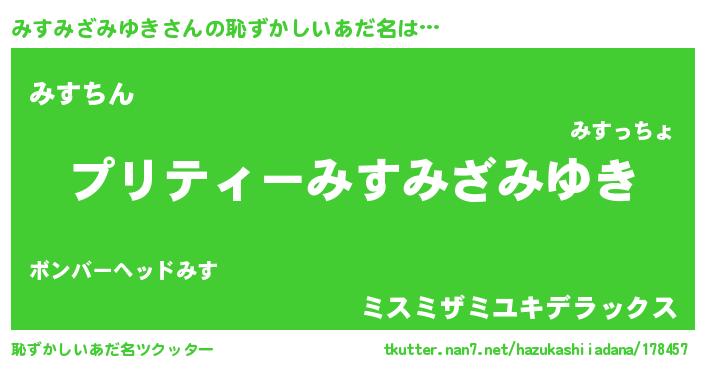 | ヘコむあだ名 | 『みすもー』『みすみざみゆき(笑)』 |