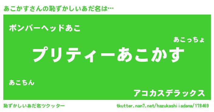 | ヘコむあだ名 | 『あこにー』『なまこ酢』『あこを』 |