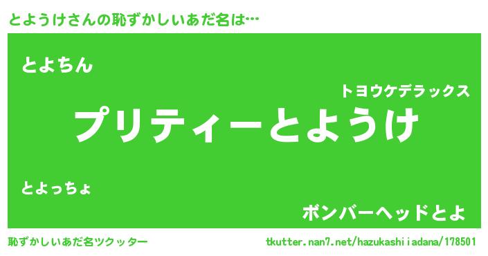 | ヘコむあだ名 | 『とよっふぃ~』『とようけ(震え声)』 |