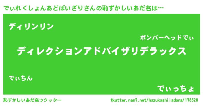| 肩書あだ名 | 『でぃれくしょんあどばいざり総統』 |