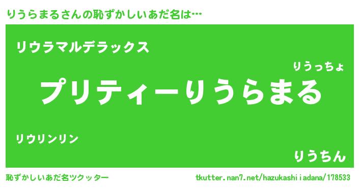 | ヘコむあだ名 | 『りうにー』『りうらまる(笑)』 |
