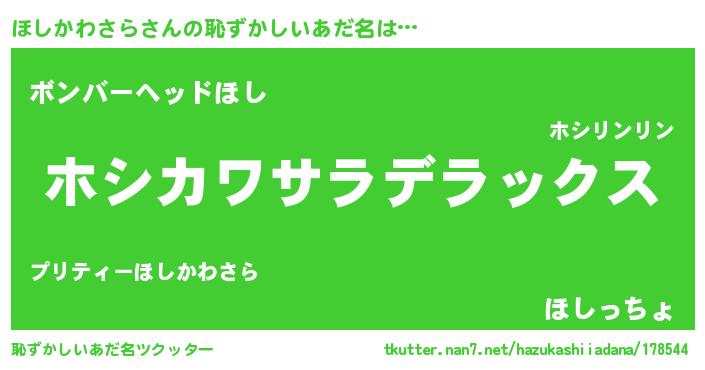 | 意味不明あだ名 | 『自称ほしかわさら』 |