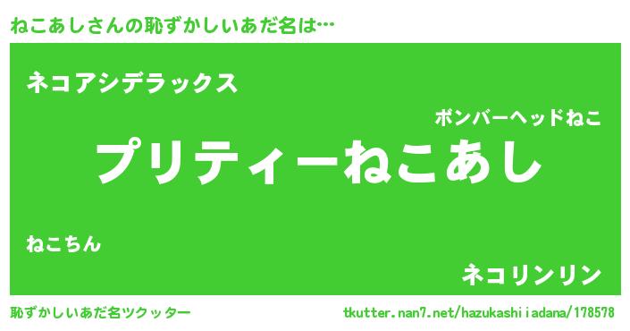 | ヘコむあだ名 | 『ねこふぇ~』『ねこっ子』『つくし』 |