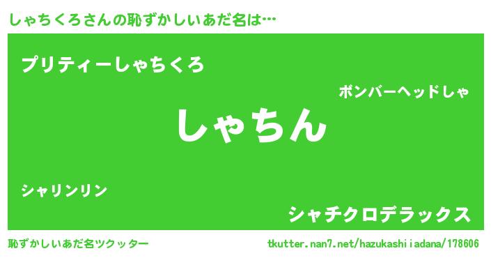 | 意味不明あだ名 | 『永久保存しゃちくろ』『自称しゃちくろ』 |