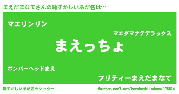 | 欧米人風あだ名 | 『まえだまなて・ステッグマイヤー』 |