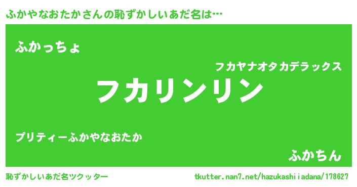 | ヘコむあだ名 | 『ふかぷりん』『豆乳』『ふかにゅー』 |