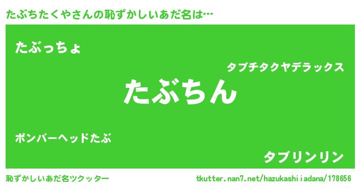| 胡散臭い通販商品みたいなあだ名 | 『絶対に幸福をもたらす健康食品…その名も「たぶちたくや」』 |