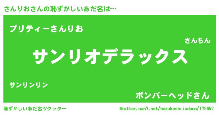 | 意味不明あだ名 | 『自称さんりお』『ペロリンさんりお』 |