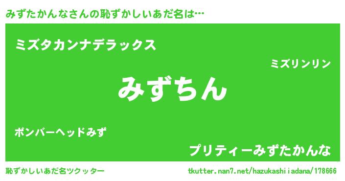 | ヘコむあだ名 | 『みずたかんな(爆)』『みずふぇ~』 |