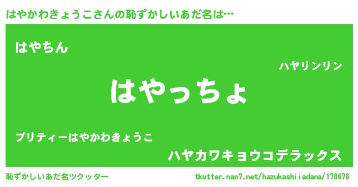 | ヒーロー風カッコイイあだ名 | 『ウルトラはやかわきょうこマン』 |