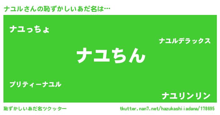 | ヘコむあだ名 | 『ナユル(小並感)』『なまこ酢』 |
