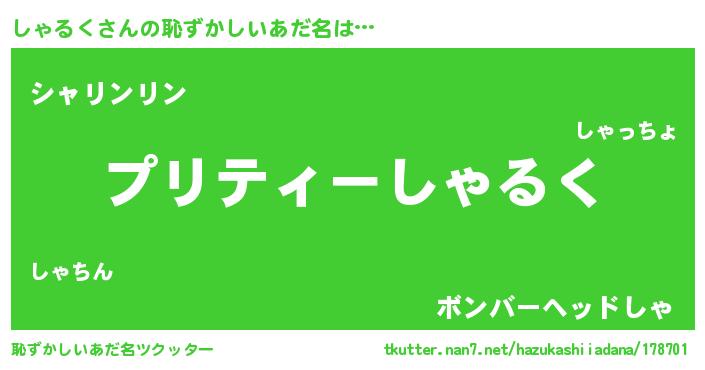 | 欧米人風あだ名 | 『マイケルしゃるく』『ウサインしゃるく』 |