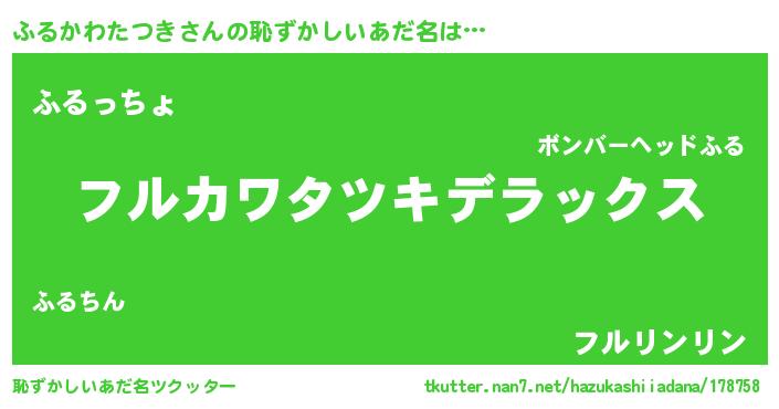 | 意味不明あだ名 | 『自称ふるかわたつき』 |