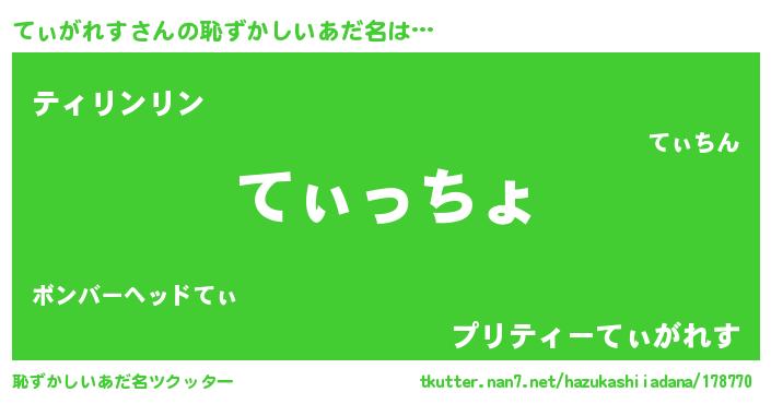 | 欧米人風あだ名 | 『てぃがれすクリステル』 |