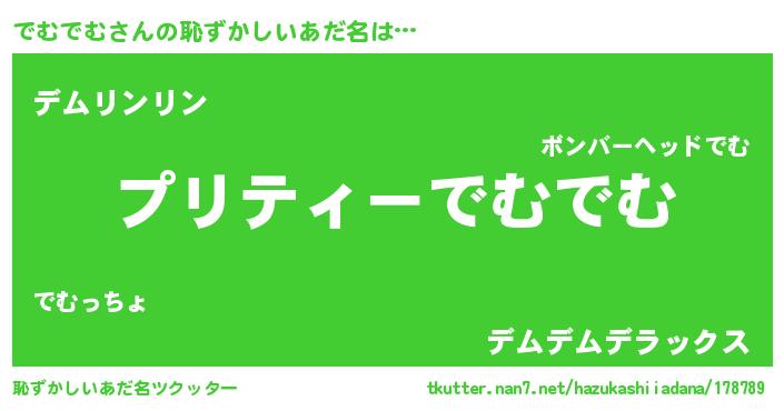 | 意味不明あだ名 | 『ペロリンでむでむ』『自称でむでむ』 |
