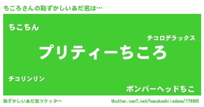 | ヘコむあだ名 | 『ちこにゅー』『ちころ(震え声)』 |
