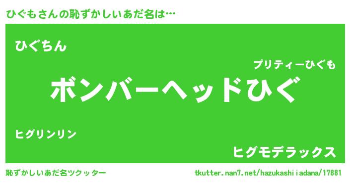 | 意味不明あだ名 | 『眠気覚ましガムひぐも味』『自称ひぐも』 |