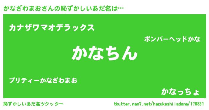 | 可愛いあだ名 | 『かなざわまおママ』『かなうちぇる』 |
