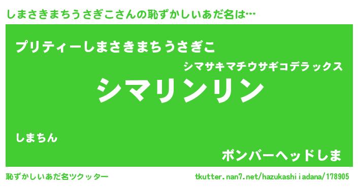 | 意味不明あだ名 | 『とにかく怪しいしまさきまちうさぎこ』 |