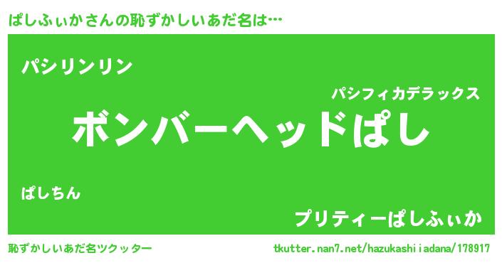 | ヒーロー風カッコイイあだ名 | 『慈愛の使者ぱしふぃか』『暗黒騎士パシ』 |