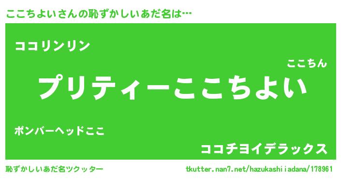 | ポケモン風あだ名 | 『ココチュウ』『ヒココチヨイ』 |