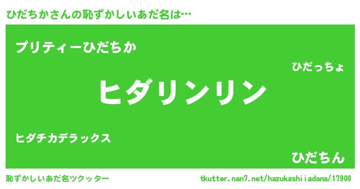 | 男性向けラノベタイトル風あだ名 | 『転生したらひだちかだった件』 |