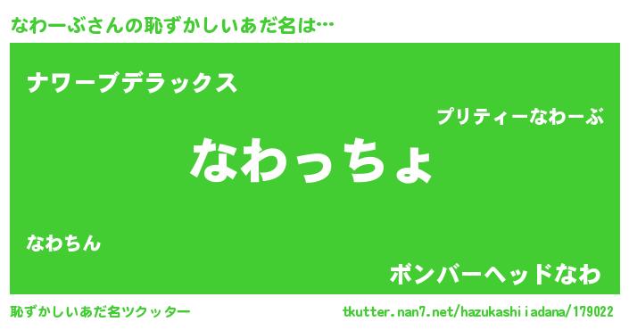 | 意味不明あだ名 | 『なわーぶフォーエバー』『自称なわーぶ』 |