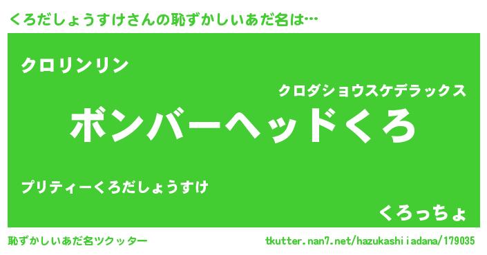 | 男性向けラノベタイトル風あだ名 | 『うちのくろだしょうすけが世界を掌握している!』 |