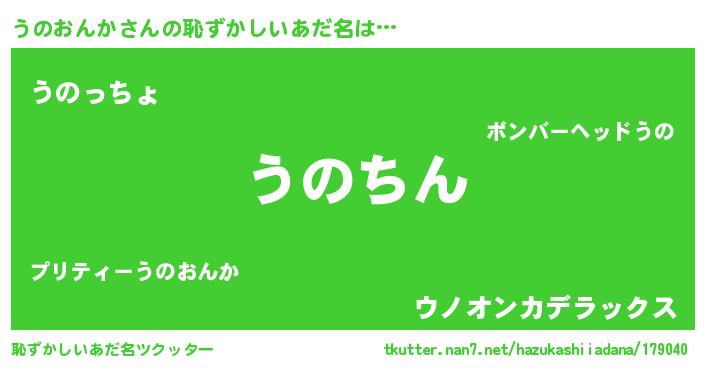 | ヘコむあだ名 | 『うのおんか(爆)』『レバニラ』 |