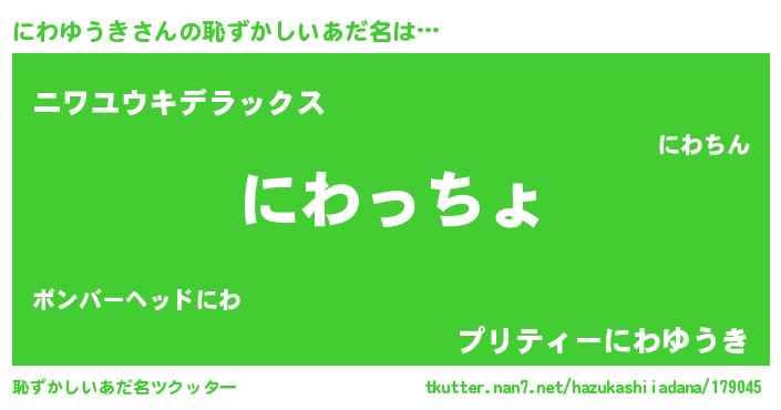 | 欧米人風あだ名 | 『にわゆうきクリステル』 |