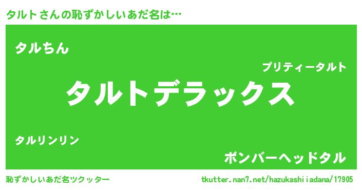 | 意味不明あだ名 | 『自称タルト』『たけのこ科タルト属』 |