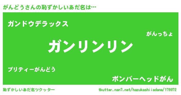 | 男性向けラノベタイトル風あだ名 | 『がんどうの嫁は女の子じゃないと思った?』 |