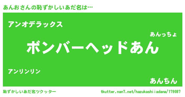 | 意味不明あだ名 | 『住所不定無職あんお(98歳)』『自称あんお』 |