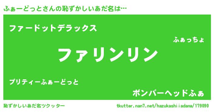 | 男性向けラノベタイトル風あだ名 | 『ふぁーどっとの嫁は女の子じゃないと思った?』 |