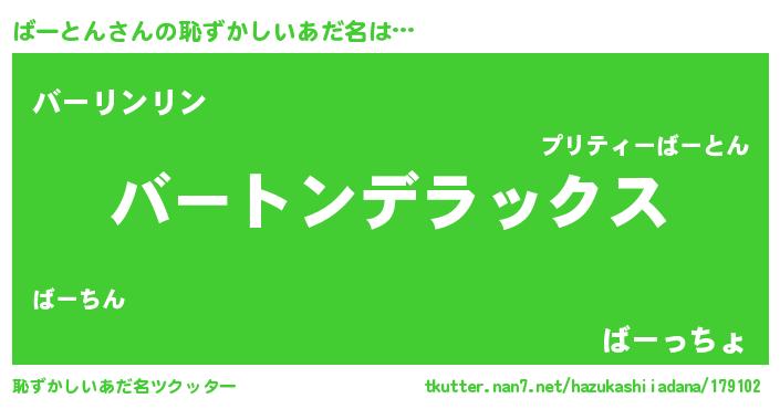 | 男性向けラノベタイトル風あだ名 | 『緋弾のバートン』『バートンスレイヤー』 |