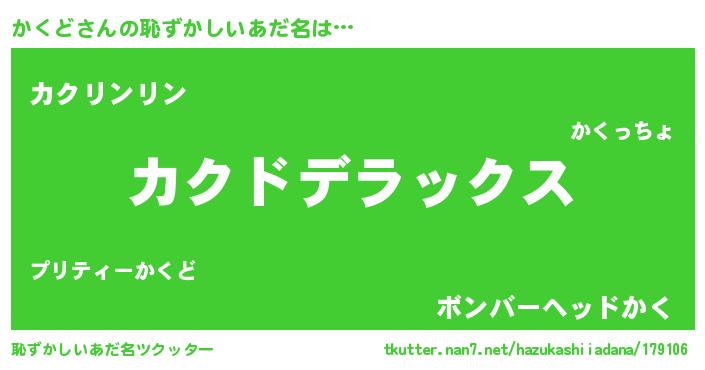 | 意味不明あだ名 | 『自称かくど』『とにかく怪しいかくど』 |