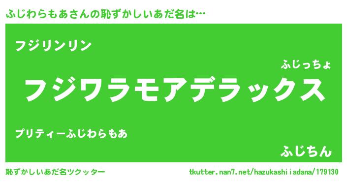 | 男性向けラノベタイトル風あだ名 | 『Re:ふじわらもあから始める異世界生活』 |