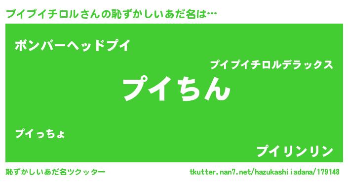 | ヘコむあだ名 | 『プイプイチロル(苦笑)』『プイお』 |