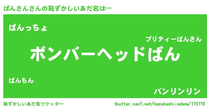 | ヘコむあだ名 | 『酢こんぶ』『ばんっぺ』 |