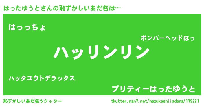 | ポケモン風あだ名 | 『ハッキング』『ヒハッタユウト』 |