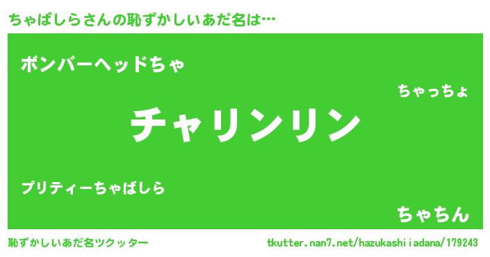| 意味不明あだ名 | 『住所不定無職ちゃばしら(40歳)』 |