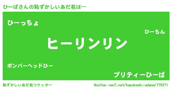 | 意味不明あだ名 | 『とにかく怪しいひーば』 |