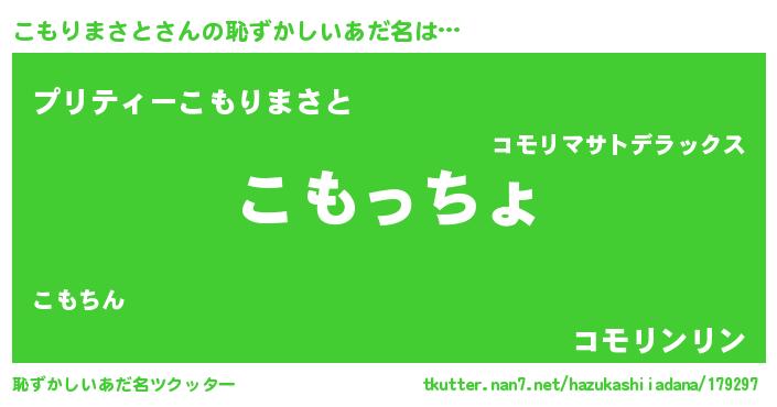 | 肩書あだ名 | 『こもりまさと教官』『こもりまさと店長』 |