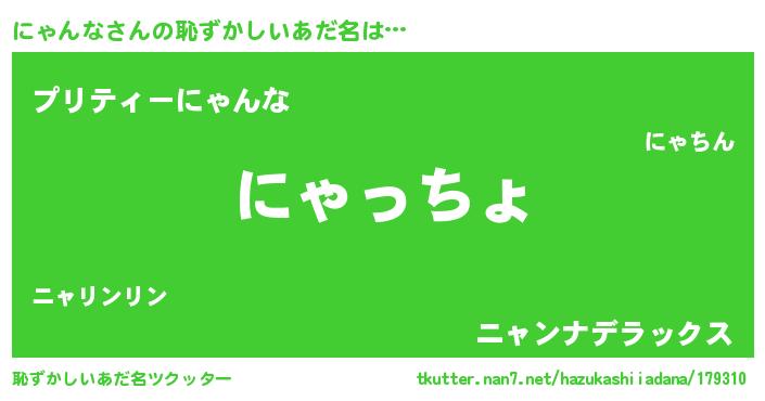 | ヘコむあだ名 | 『なまこ酢』『にゃにゅー』『にゃを』 |