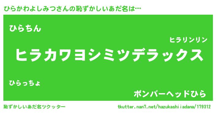 | 意味不明あだ名 | 『自称ひらかわよしみつ』 |