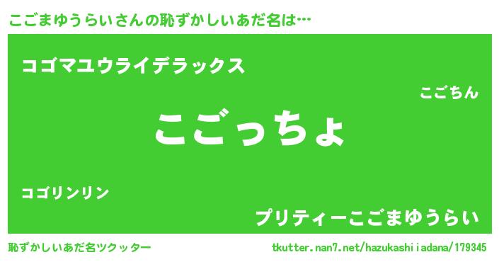 | 意味不明あだ名 | 『住所不定無職こごまゆうらい(2歳)』 |