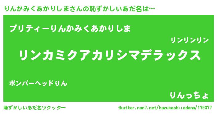 | 女子向けラノベタイトル風あだ名 | 『りんかみくあかりしまなんてお断りですっ。』 |